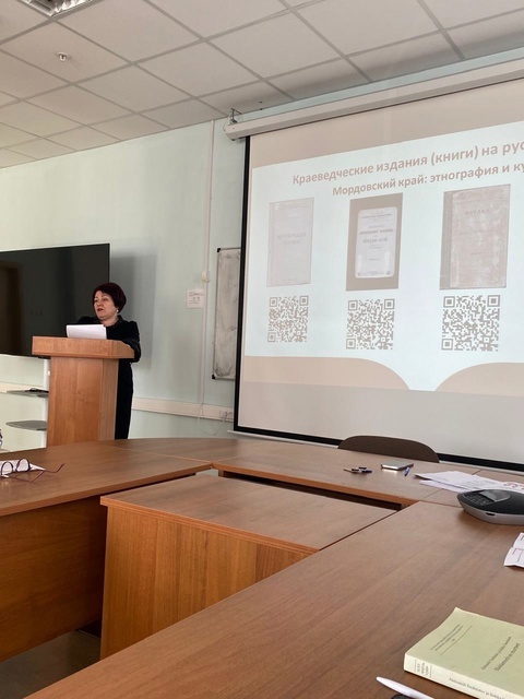 Главный библиотекарь отдела национальной и краеведческой литературы НБ В. И. Пронина в своем выступлении обозначила современное состояние фонда национальных изданий библиотеки, их использование, продвижение, сохранение. Для участников семинара Вера Ивановна подготовила лучшие образцы краеведческих книг по направлению мордовского языкознания, литературоведения, художественные издания и т. д.