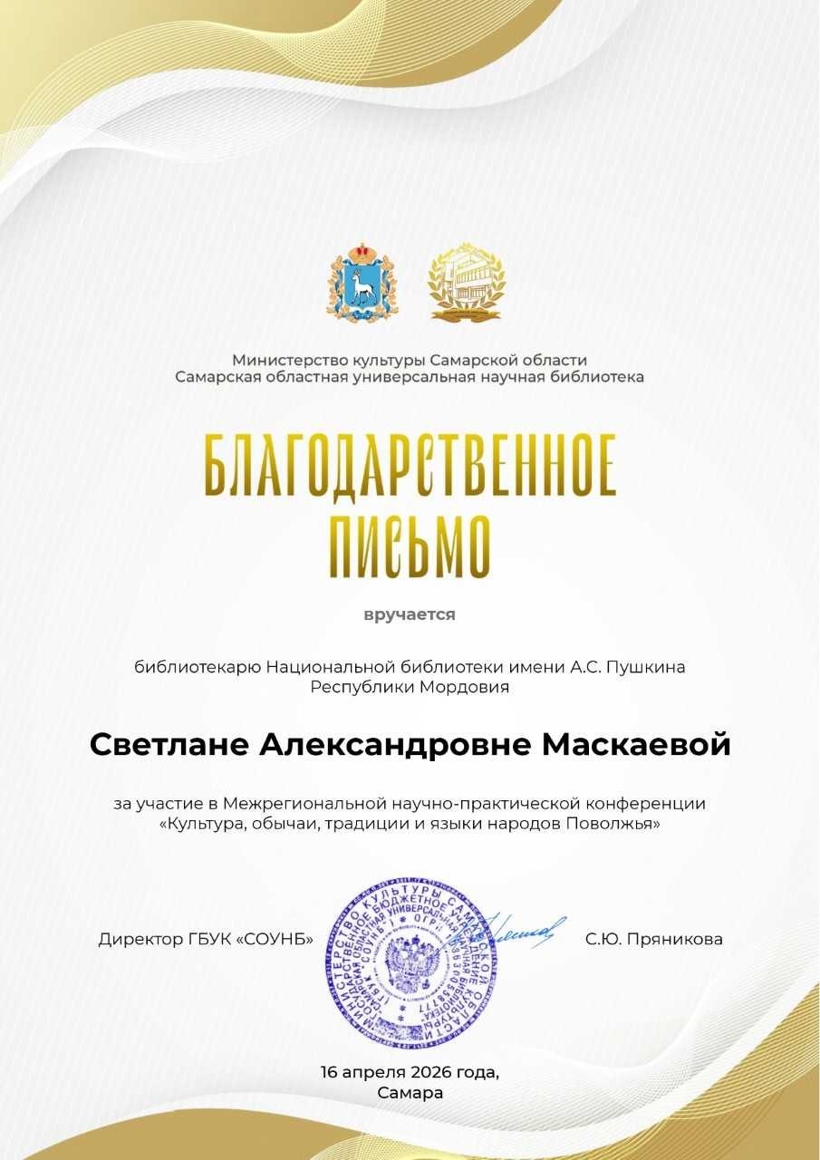 16 апреля на базе Самарской областной универсальной научной библиотеки состоялась межрегиональная научно-практическая конференция «Культура, обычаи, традиции и языки народов Поволжья», приуроченная к Году единства народов России.