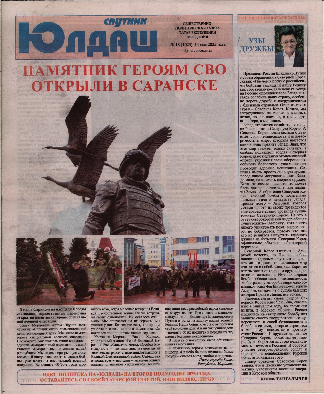 В газете «Юлдаш» (№ 20 от 28 мая) вышла статья, подготовленная сотрудниками отдела национальной и краеведческой литературы Пушкинки.