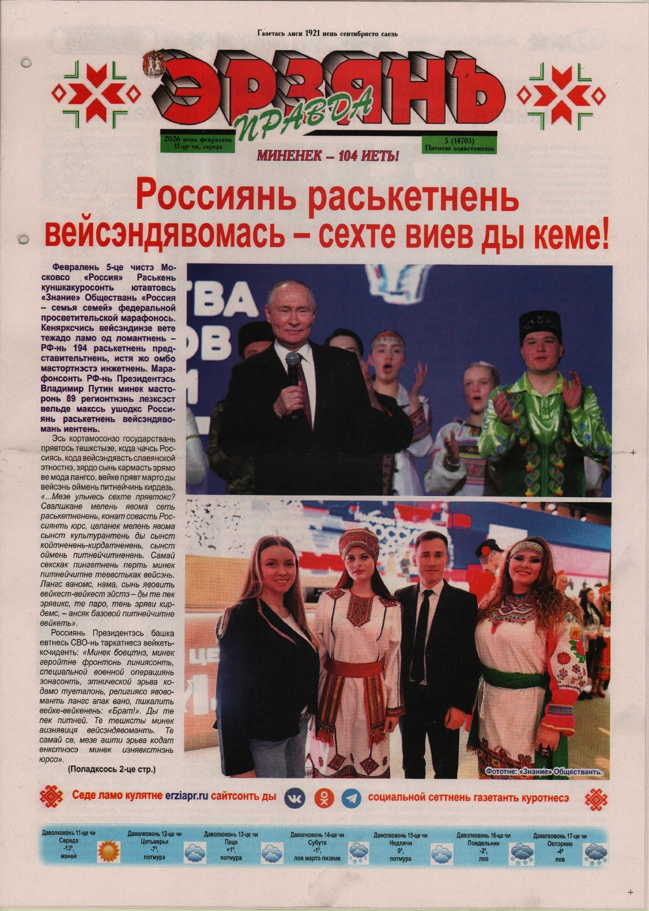 В газете «Эрзянь правда» (№ 5 от 11 февраля) вышла статья, подготовленная сотрудниками отдела национальной и краеведческой литературы Пушкинки.