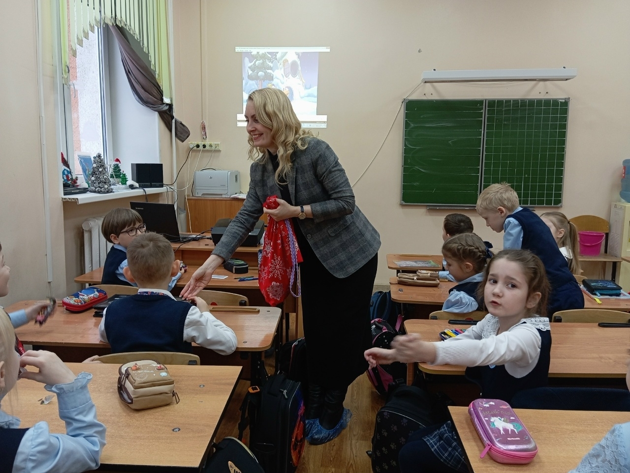 В завершение мероприятия школьники получили сладкое угощение от Санта Куллосу и посмотрели мультфильм на новогоднюю тематику.