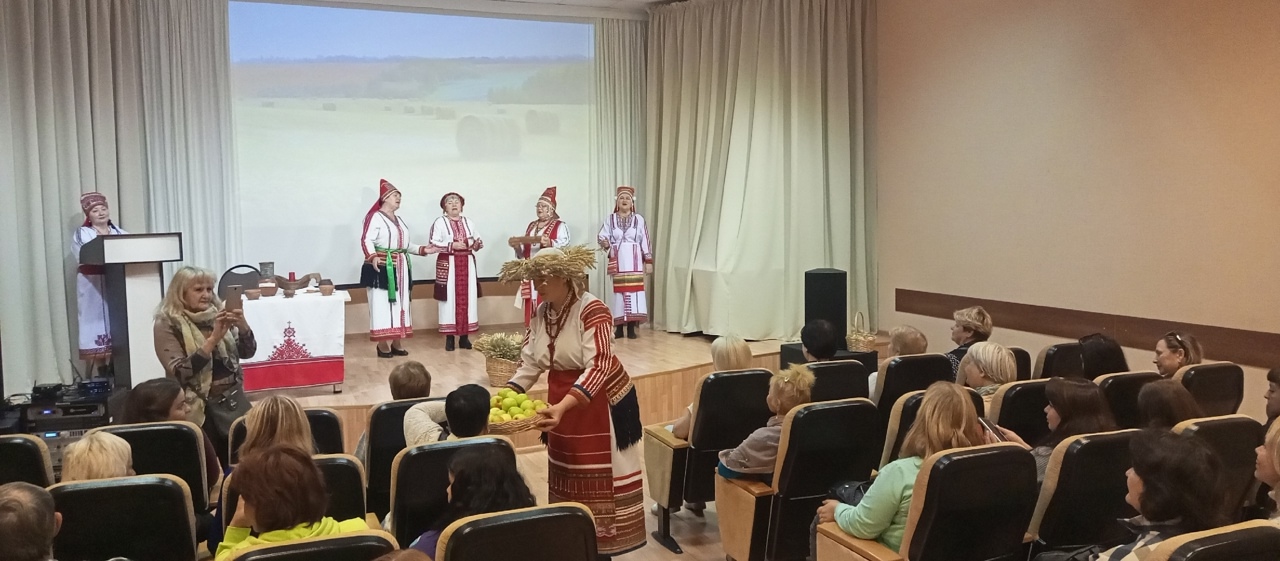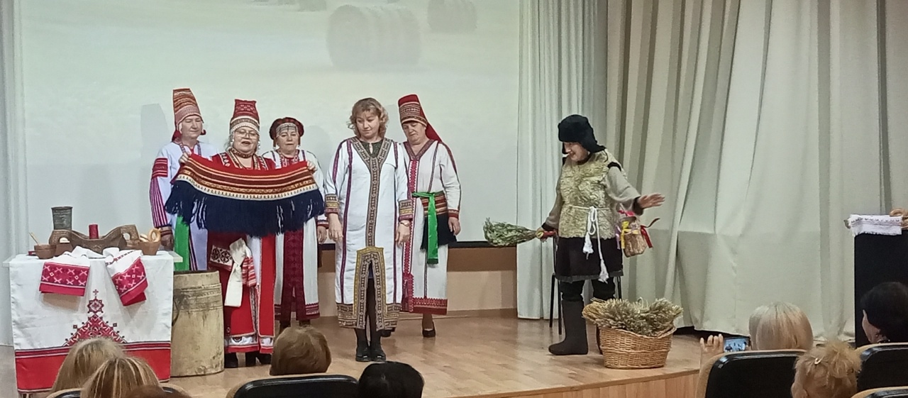В выходной день Пушкинка распахнула двери для гостей из Нижнего Новгорода. Сотрудники отдела национальной и краеведческой литературы вместе с участниками народного фольклорно-этнографического ансамбля «Ламзурь» подготовили фольклорное представление по календарно-обрядовым традициям осеннего цикла. Мероприятие сопровождалось обрядовыми действиями, посвященными покровительнице урожая Нороваве (богине плодородия). Гости узнали, что осенью самое важное место занимали обряды, посвященные началу и окончанию уборочных работ и сборов плодов, к празднику готовились всем селом. Норовава угощала присутствующих в зале гостинцами, пела песни, водила хоровод.