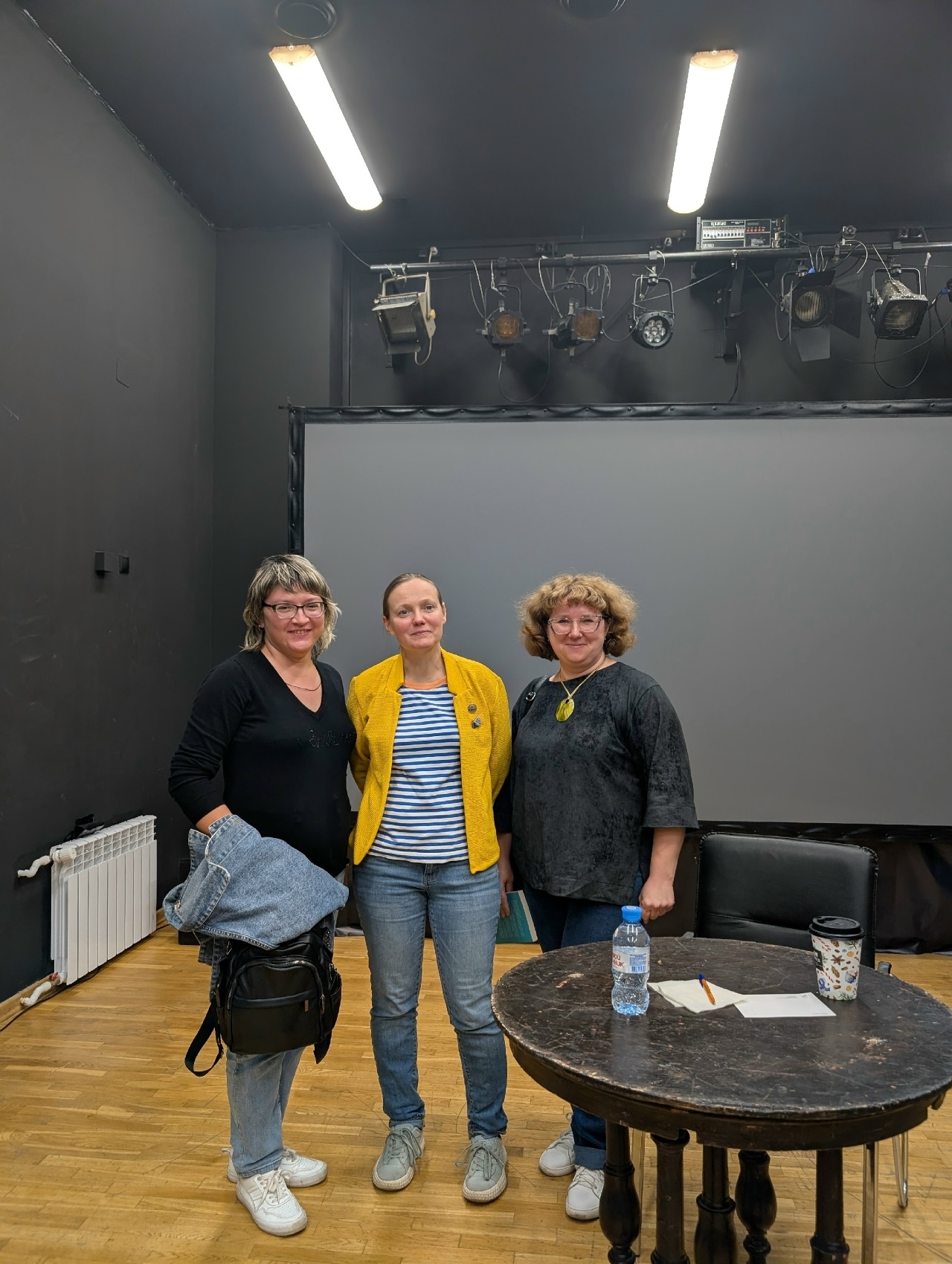 Перед собранием у клубовцев появился шанс глубже погрузиться в атмосферу произведения, посетив одноименную постановку Государственного русского драматического театра. На спектакле все желающие смогли пообщаться с автором Ниной Дашевской, получить автограф и узнать ответы на интересующие их вопросы.
