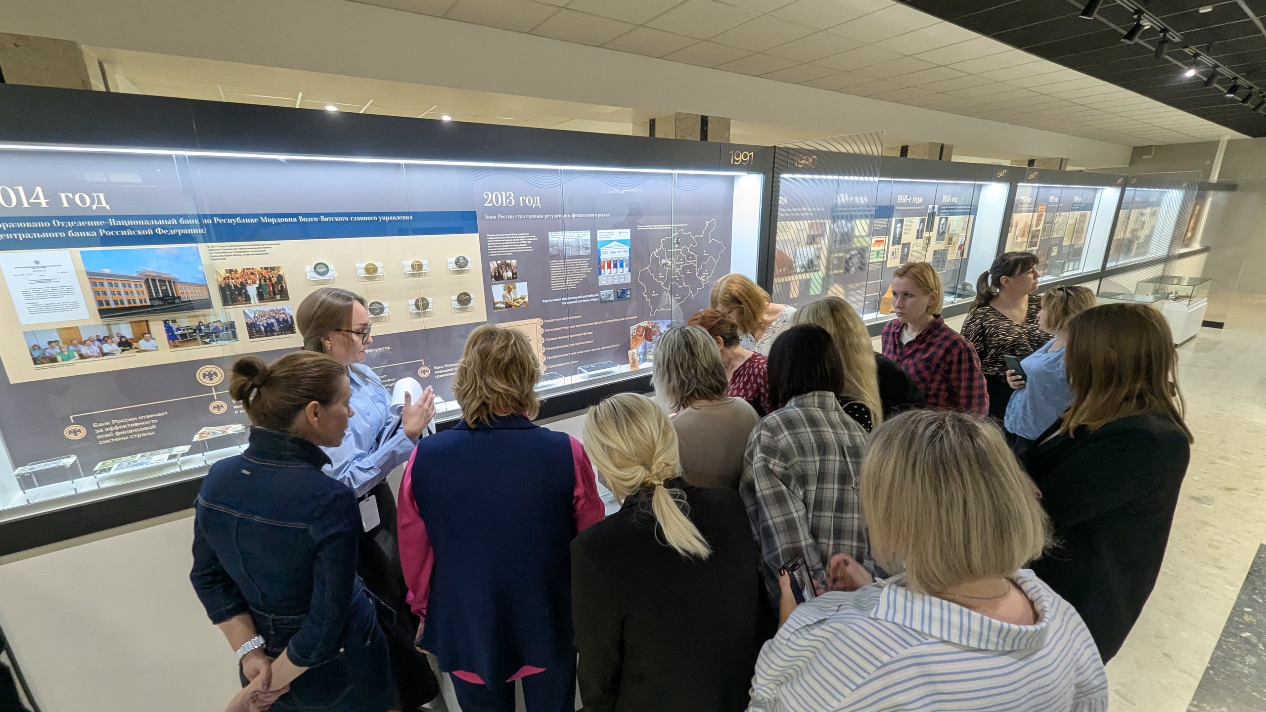 3 июля сотрудники Национальной библиотеки Мордовии побывали на экскурсии в музее Банка России. В уютном выставочном пространстве расположилась экспозиция, рассказывающая об истории Центрального банка с момента его открытия в Мордовии и до наших дней. Библиотекари с интересом изучали экспонаты, среди которых – средневековые русские монеты «чешуйки», а также банкноты – от исторических «катеньки» и «петеньки» до купюр, которые еще застали дети 90-х.