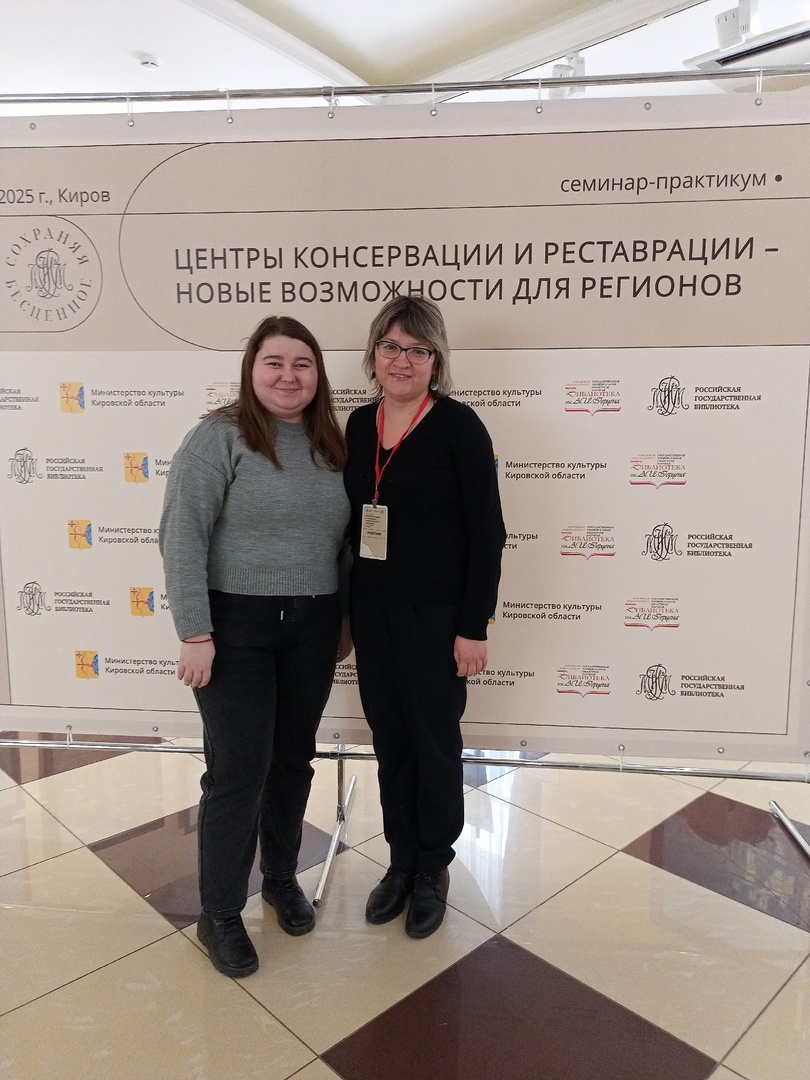 9 и 10 апреля сотрудники Регионального центра консервации и реставрации Пушкинки приняли участие во Всероссийском семинаре-практикуме «Центры консервации и реставрации – новые возможности для регионов», который прошел на базе Кировской областной научной библиотеки им. А. И. Герцена. Мероприятие было организовано в сотрудничестве с Министерством культуры Кировской области и Российской государственной библиотекой.