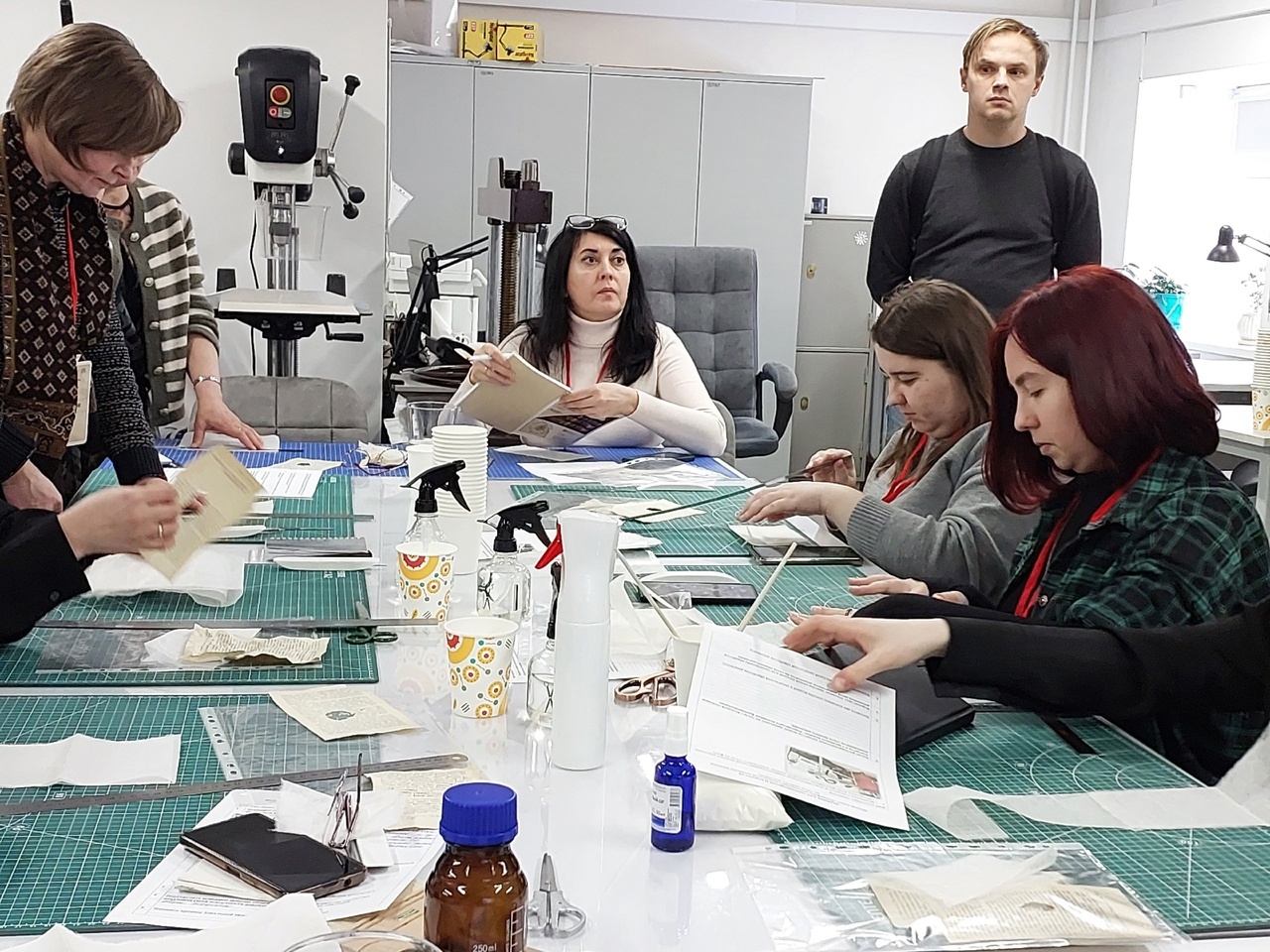 Лапинская Мария Александровна, художник-реставратор I категории отдела реставрации РГБ (г. Москва), провела занятие на тему «Укрепление бумажной основы методом дублирования», заведующий сектором превентивной консервации РГБ (г. Москва) Оксана Владимировна Шадрина – практическое занятие на тему «Специфика работы с экспертным pH-метром».