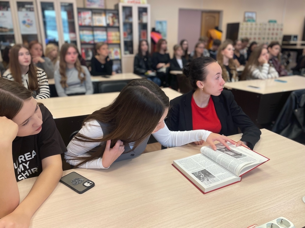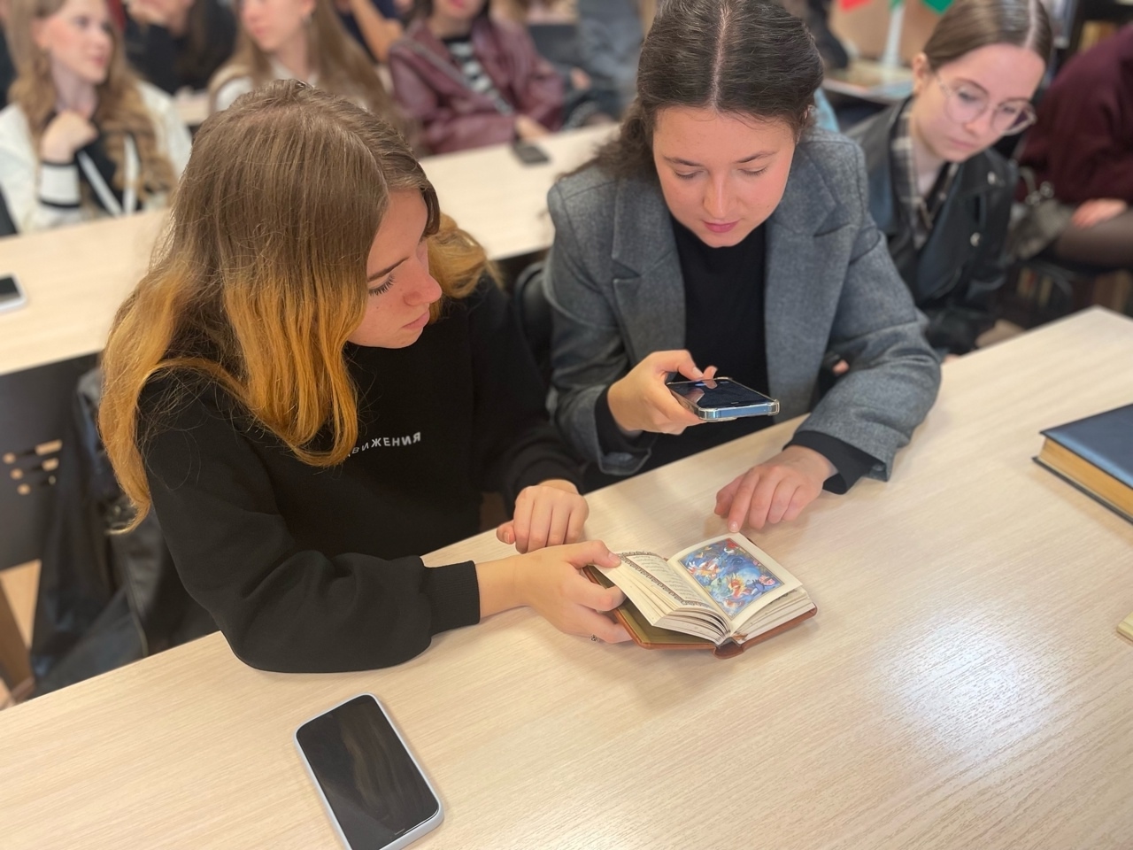 В ходе тематической экскурсии сотрудники рассказали об уникальных экспонатах, редких книгах, монументальных энциклопедиях, которые входят в состав фонда.