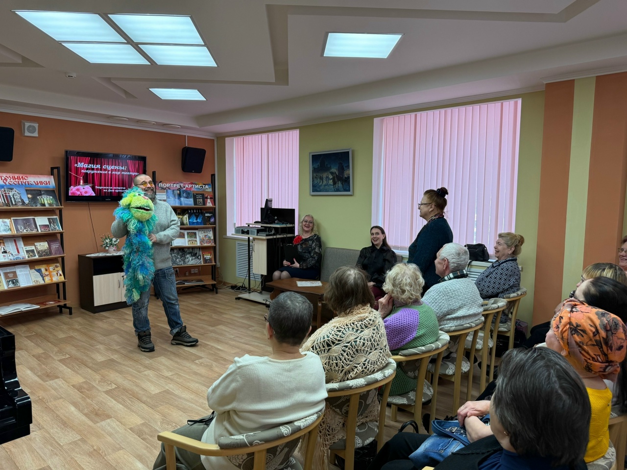 В этот профессиональный день, объединяющий всех деятелей сцены, от эстрадных звезд до цирковых виртуозов, появился уникальный повод чествовать всех, кто выходит на сцену. На творческую встречу пришли настоящие мастера своего дела. Дмитрий Геннадьевич Данейкин, заведующий производственной мастерской Государственного театра кукол РМ, а также актер и режиссер, не только поделился секретами своего творческого пути, но и принес с собой куклу, наглядно продемонстрировав тонкости работы с ней. Гости с интересом слушали его рассказы и задавали вопросы.