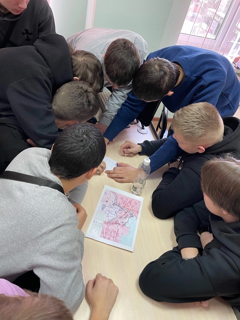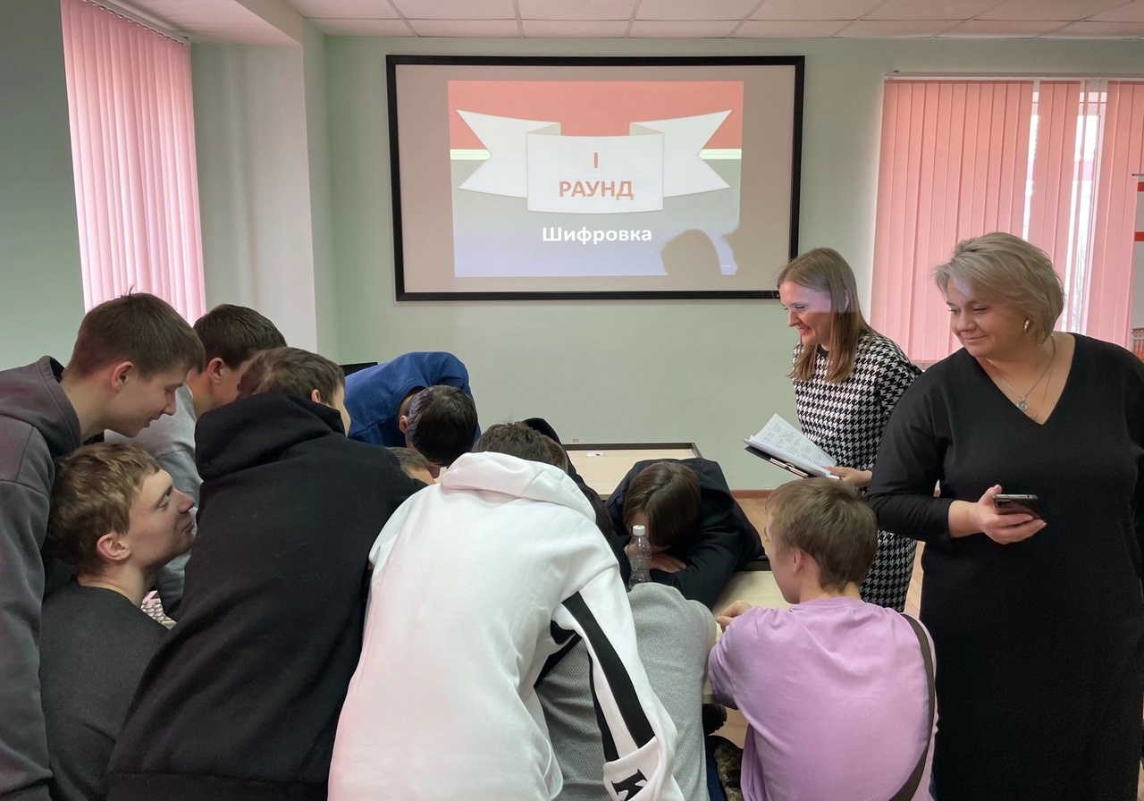 Затем участники встречи разделились на команды и погрузились в историческую интерактивную игру «Блокада Ленинграда». Ребята расшифровывали послание, используя записи сигналов Азбуки Морзе, проходили болото и минные поля, определяли суточную норму хлеба для разных категорий населения осажденного города, а также отвечали на вопросы викторины. Игра позволила учащимся показать исторические знания и расширить представления о жизни блокадного города.