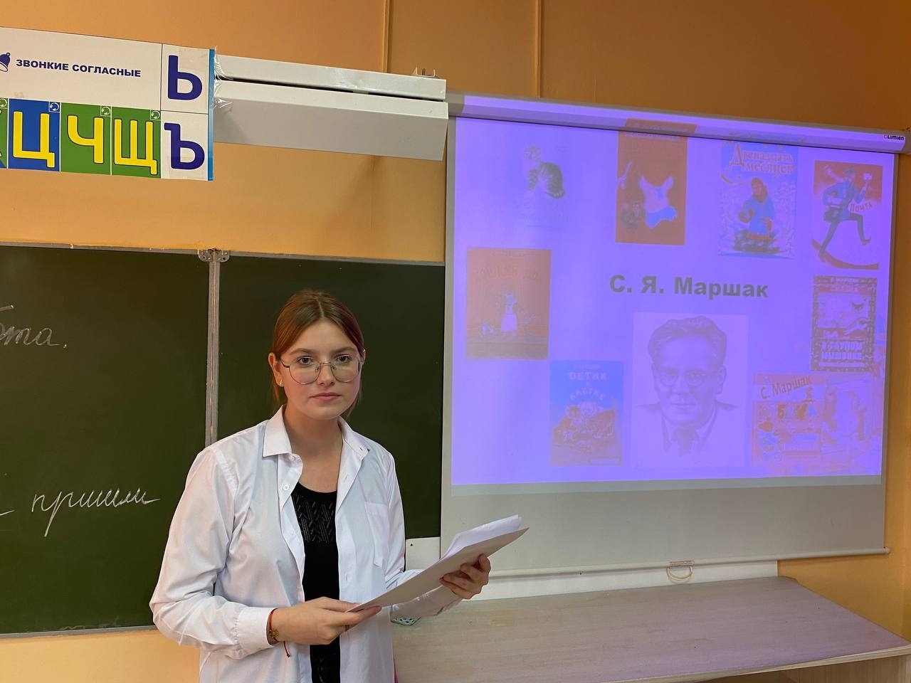 7 ноября сотрудники отдела периодических изданий Пушкинки представили вниманию учащихся школы № 11 викторину «Веселый час с Маршаком», посвященную жизни и творчеству знаменитого детского автора С. Я. Маршака.