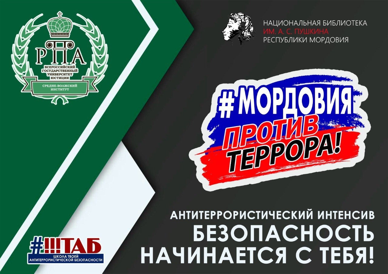 Организаторами мероприятия выступили «Школа твоей антитеррористической безопасности» Средне-Волжского института (филиала) ВГУЮ (РПА Минюста России) и Национальная библиотека им. А. С. Пушкина Республики Мордовия.