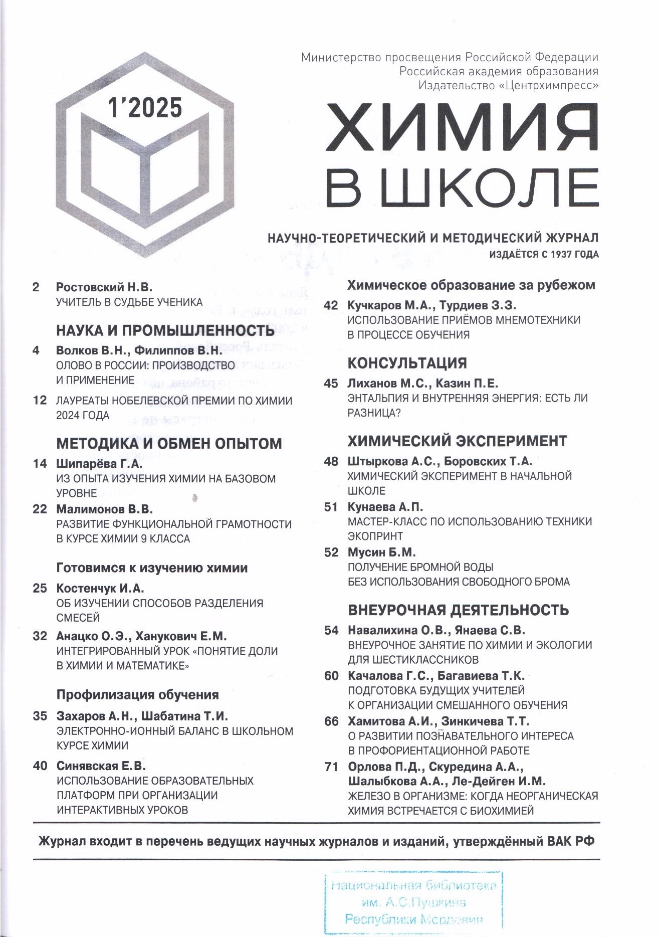 Познакомиться с рубриками журнала и аннотациями статей можно по ссылке: https://hvsh.ru/2025-1/, а с журналом – в отделе периодических изданий Пушкинки: https://vk.com/periodikasaransk.