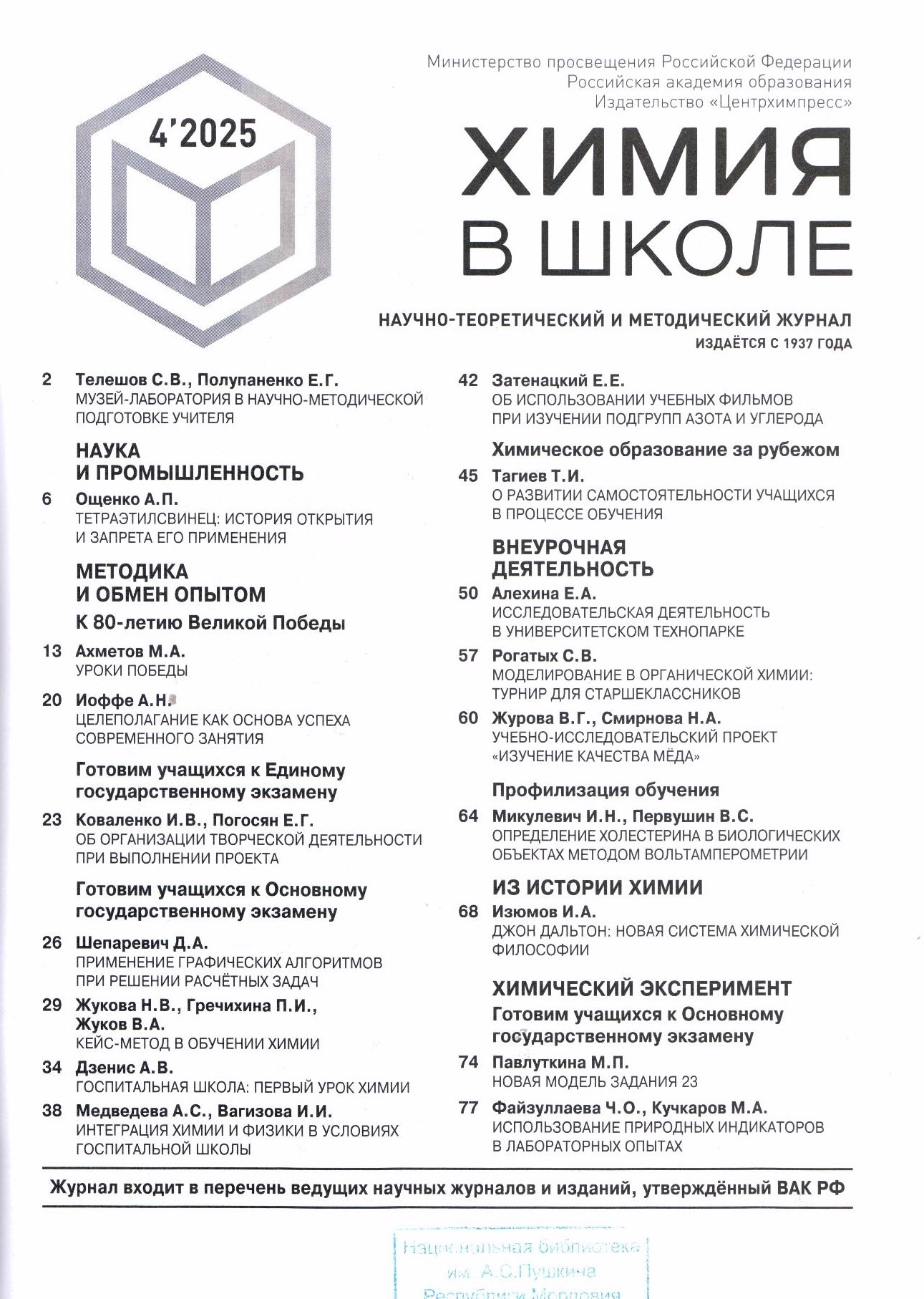 Журнал «Химия в школе» сочетает простоту и наглядность с высоким уровнем научности, отлично подходит для глубокого понимания и качественной подготовки по химии, развивает ключевые навыки и функциональную грамотность, включает продуманные задания для развития критического мышления у школьников, подходит для уроков, кружков и дополнительных занятий. Журнал по-прежнему остается трибуной для обмена опытом. Целевая аудитория журнала – учителя химии различных образовательных учреждений, преподаватели педвузов.