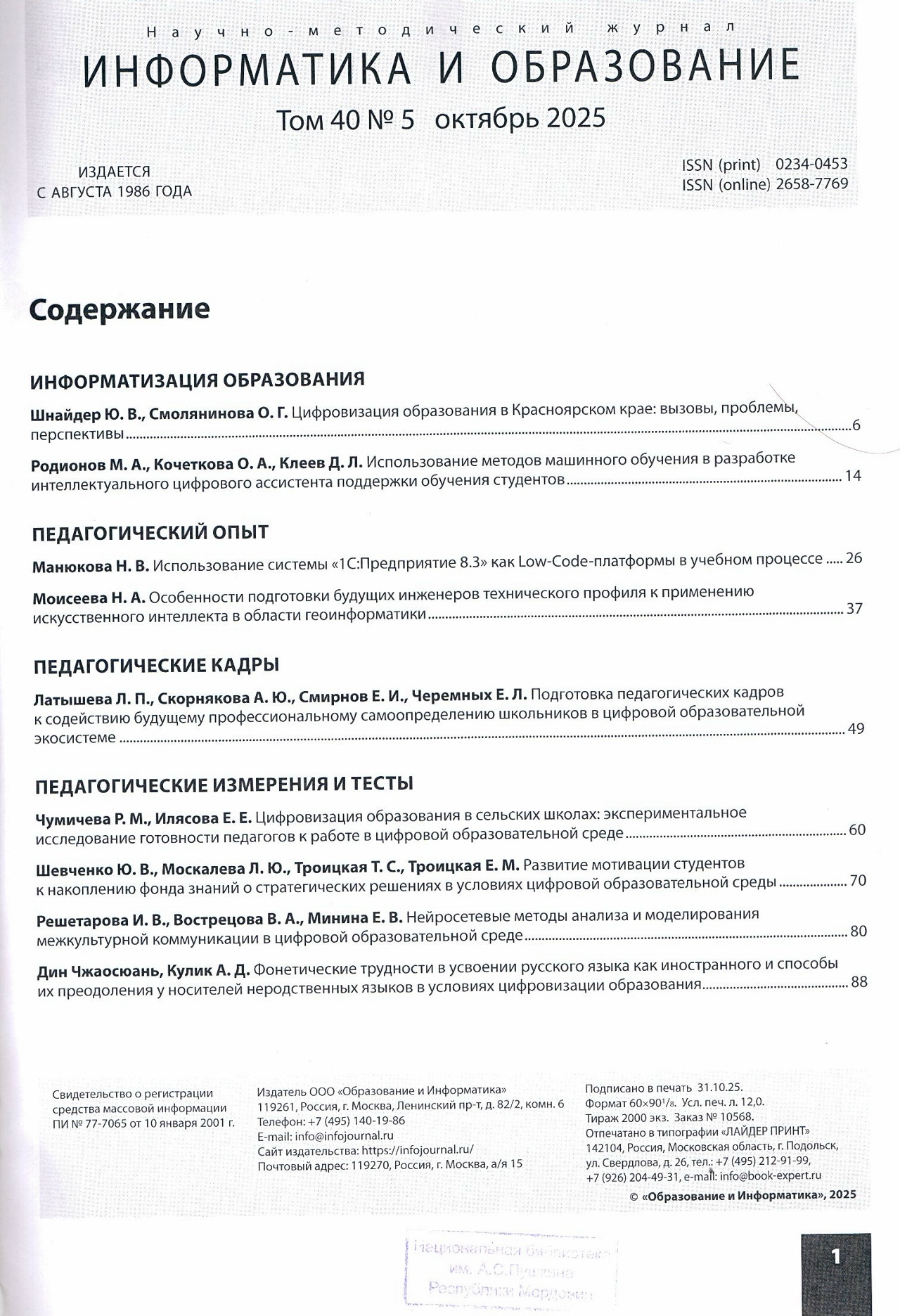Предлагаем вашему вниманию краткий обзор пятого номера журнала за 2025 год.