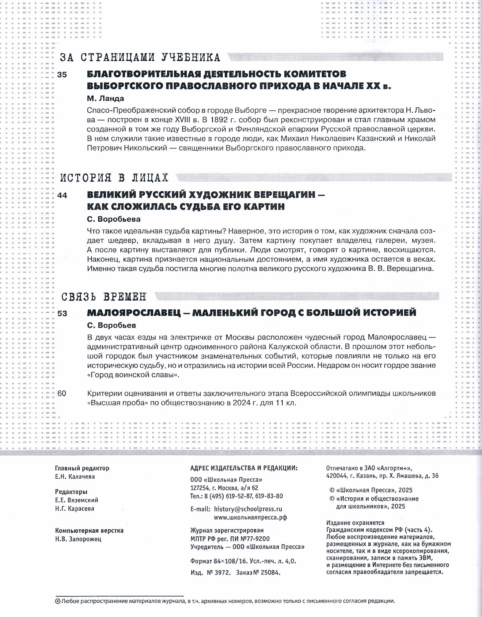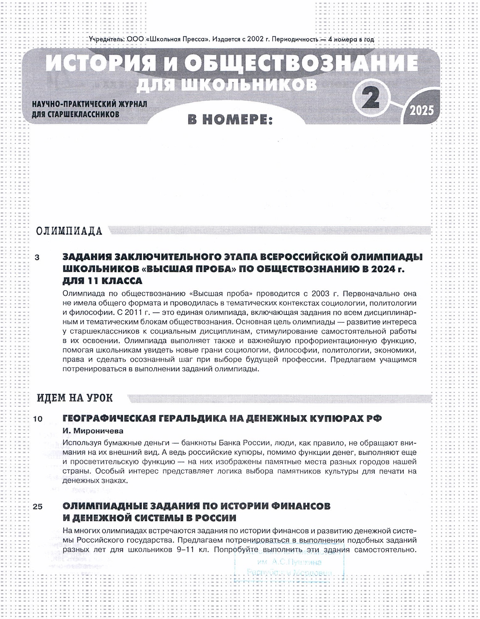Предлагаем краткий обзор второго номера научно-практического журнала «История и обществознание для школьников» за 2025 год.