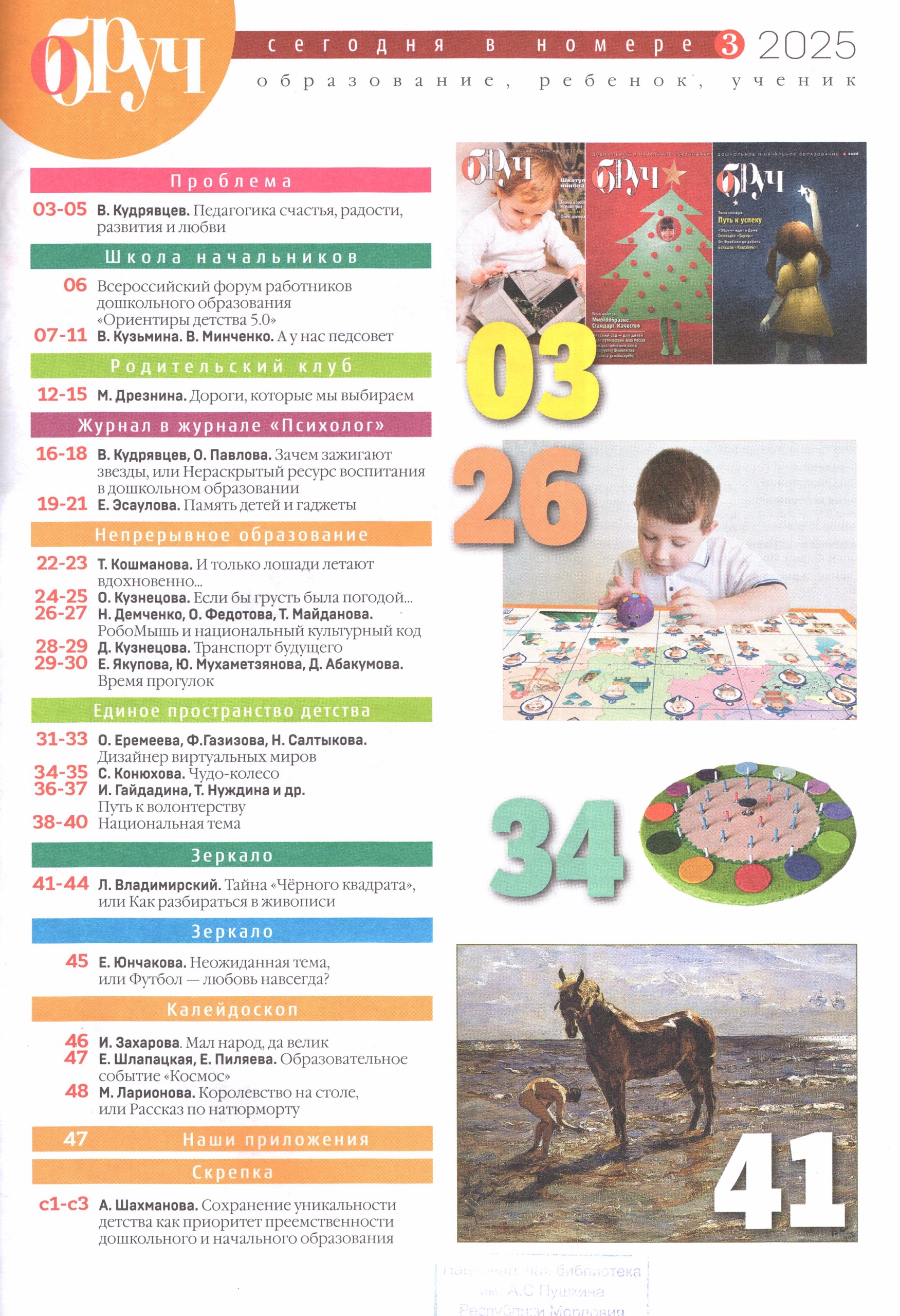 В фонд библиотеки поступил третий номер журнала «Обруч» за 2025 год. Данный журнал известен в дошкольном образовании с 1995 года. Здесь публикуются разнообразные теоретические и практические материалы, официальные документы. Большое внимание уделяется вопросам психологии, методики воспитания и обучения, созданию развивающей среды. На страницах журнала делятся опытом работы педагоги образовательных учреждений России.