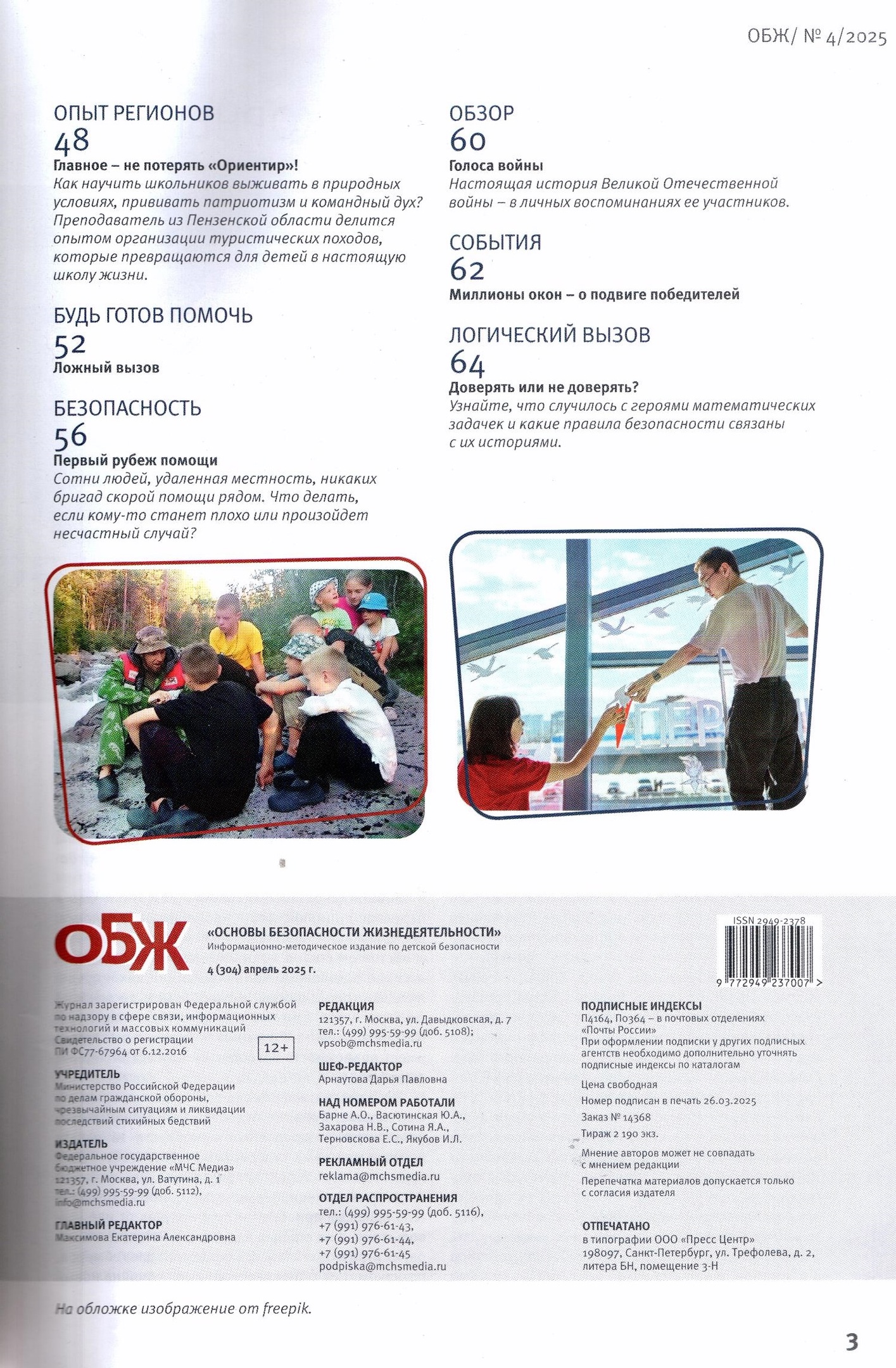Познакомиться с рубриками журнала можно по ссылке: /ru/magazines/osnovyi-bezopasnosti-zhiznedeyatelnosti/4-2025#, а с журналом – в отделе периодических изданий Пушкинки: https://vk.com/periodikasaransk.