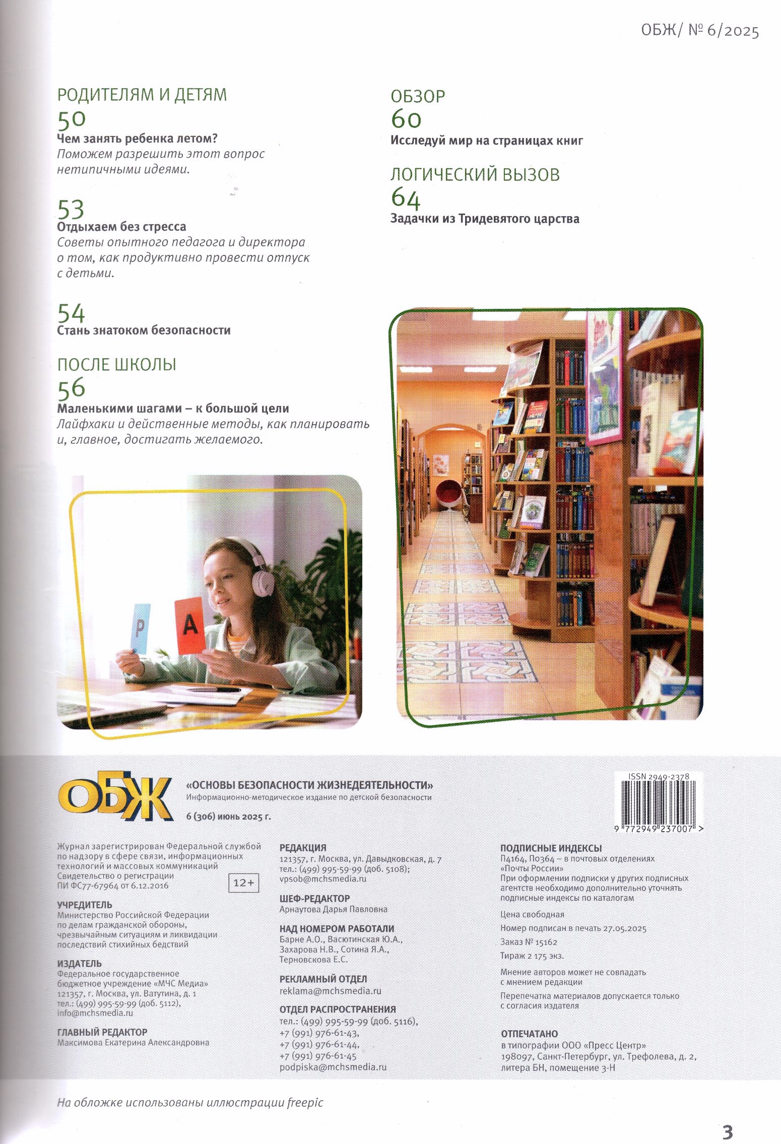 Познакомиться с рубриками журнала можно по ссылке: /ru/magazines/osnovyi-bezopasnosti-zhiznedeyatelnosti/6-2025#, а с журналом – в отделе периодических изданий Пушкинки: https://vk.com/periodikasaransk.