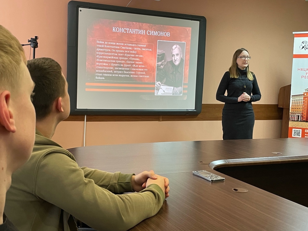 В рамках Года защитника Отечества сотрудники отдела периодических изданий провели для студентов Саранского строительного техникума вечер памяти «Поэзию, как трепет сердца, никто не может отменить…». 4 апреля присутствующих познакомили с творчеством поэтов-фронтовиков, чьи слова стали настоящим оружием против врага в годы Великой Отечественной.