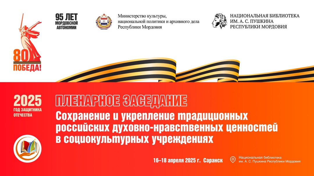 17 апреля в Национальной библиотеке им. А. С. Пушкина Республики Мордовия продолжил свою работу VII Межрегиональный форум социально-библиотечных проектов. Второй день работы Форума открыло основное мероприятие – пленарное заседание «Сохранение и укрепление традиционных российских духовно-нравственных ценностей в социокультурных учреждениях». Модератором пленарного заседания выступила директор НБ им. А. С. Пушкина РМ Анастасия Владимировна Бакулина.