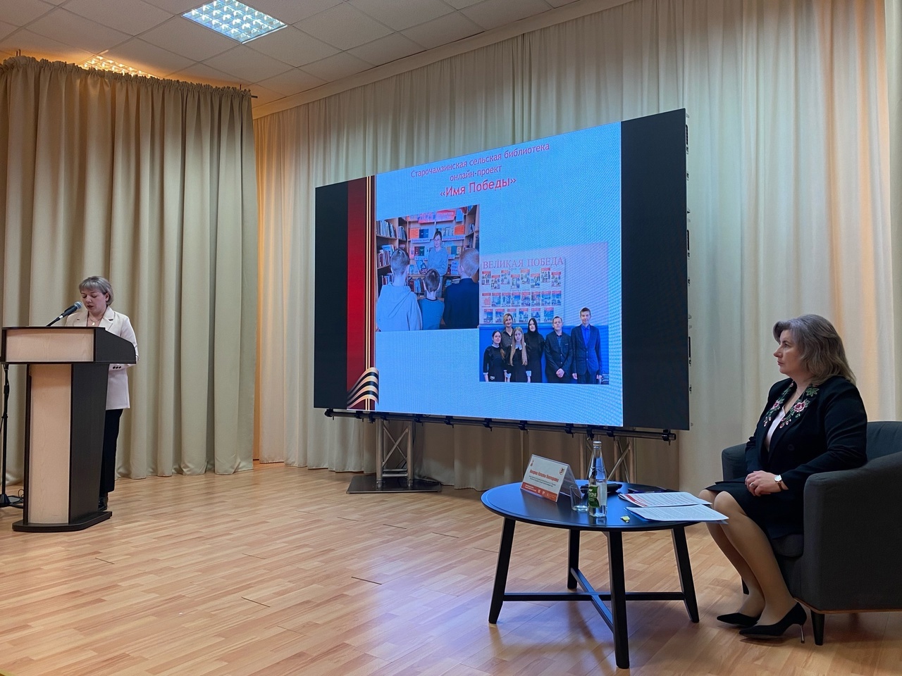 Елена Николаевна Анташева, заведующий отделом обслуживания МБУК «Большеигнатовская ЦРБ», познакомила присутствующих с реализуемым патриотическим онлайн-проектом «Шагает о району Победа», в котором принимают участие все библиотеки района.