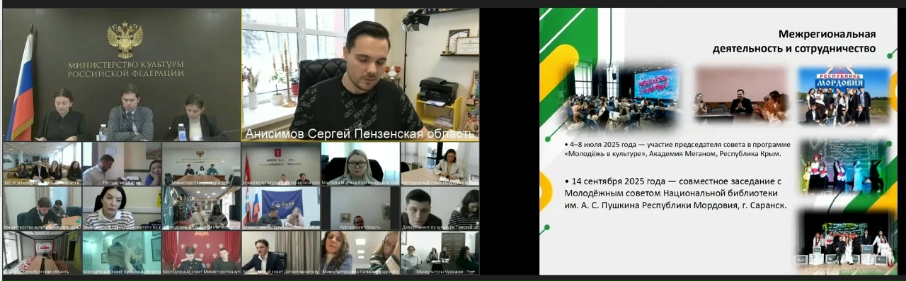 29 января в Национальной библиотеке Мордовии состоялось всероссийское совещание в формате видео-конференц-связи с молодежными советами органов исполнительной власти субъектов Российской Федерации в сфере культуры творческого сообщества «Молодежь в культуре».