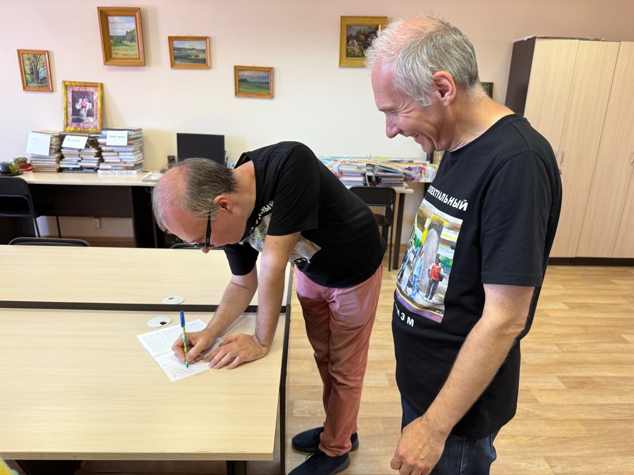 В отделе литературы по искусству 28 июля царила особая атмосфера: здесь собрались ценители прекрасного, чтобы познакомиться с творчеством братьев-художников из Санкт-Петербурга, Андрея и Николая Дмитренко.