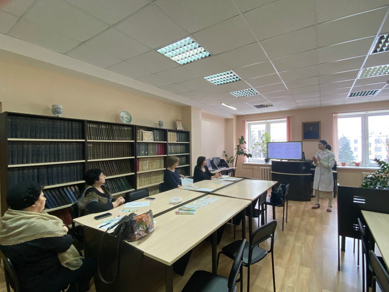 3 февраля в рамках Года активного долголетия сотрудники отдела информационно-библиографического обслуживания для членов клуба «В кругу друзей» организовали встречу с врачом-терапевтом Регионального центра общественного здоровья и медицинской профилактики Республики Мордовия М. В. Чаиркиной. На мероприятии участники получили консультацию по вопросам рациона питания для поддержания здоровья, энергии и активного образа жизни в зрелом возрасте. Встреча была инициирована с целью углубления знаний о принципах здорового питания, особенно актуальных в контексте продления активного периода жизни.