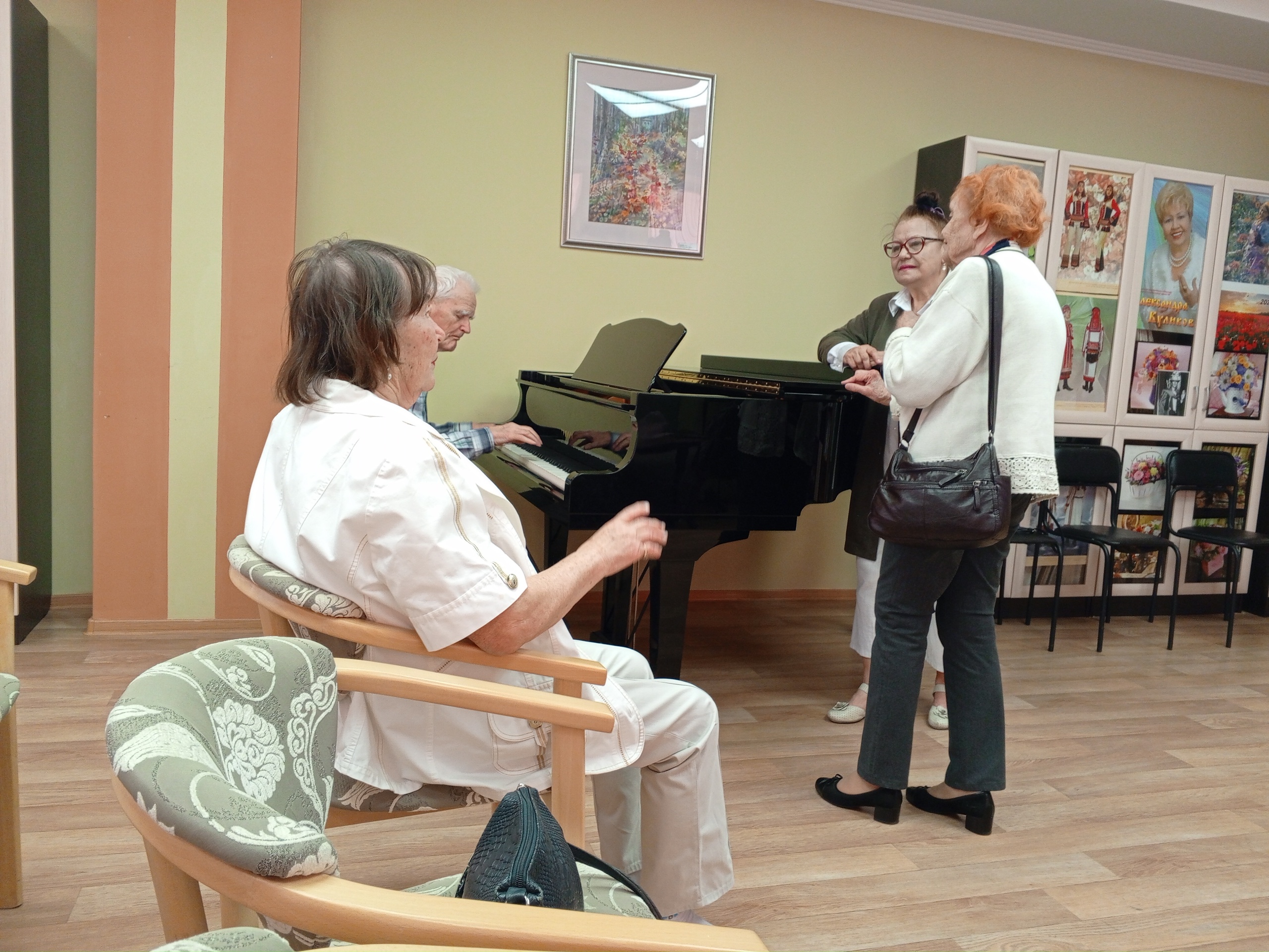 Всё вышесказанное относится и к участникам клуба «Ретро»! Сегодняшнее заседание не было запланировано, самые активные участники собрались, чтобы поделится своими впечатлениями о прочитанном, увиденном, случившемся с ними, зарядиться позитивным настроением. И, конечно же, пели песни и танцевали под звуки рояля «под управлением» Арнольда Викторовича Селезнева.