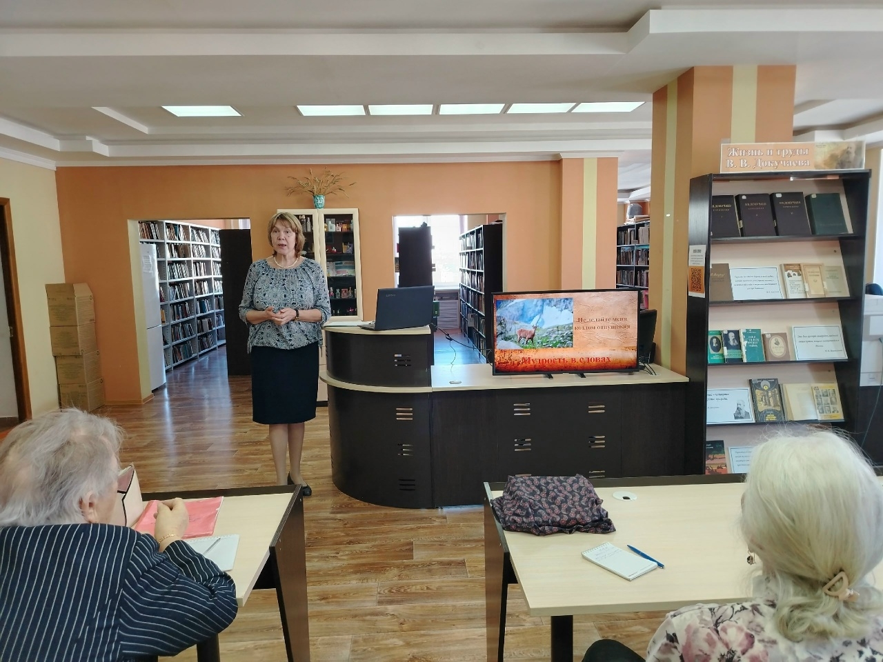В рамках заседания клуба сотрудники отдела естественнонаучной и производственной литературы провели увлекательный информационный час «Мудрость в словах». Оказывается, каждый из нас хоть раз в жизни цитировал Библию, даже если никогда её не открывал. Некоторые библейские выражения так давно превратились в пословицы и поговорки, что никто уже не задумывается ни об их происхождении, ни о первоначальном смысле. Вот о них и рассказали библиотекари слушателям – о мудрости веков, взятой из глубин Библии.