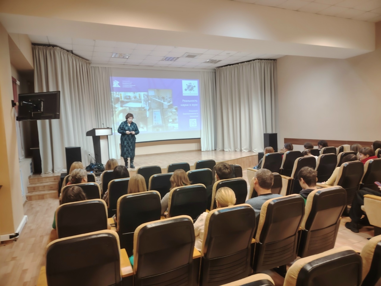 Приглашенный гость – заведующая кафедрой общей генетики, генной инженерии и биоинженерии факультета биотехнологии и биологии МГУ им. Н. П. Огарёва, кандидат биологических наук, доцент Наталья Васильевна Громова – в своем выступлении «Реальность науки в вузе» рассказала участникам клуба о своем факультете, о том, какие научные исследования проводятся в биологических лабораториях, какое участие в этом принимают студенты и как научная деятельность в вузе объединяет разные факультеты.