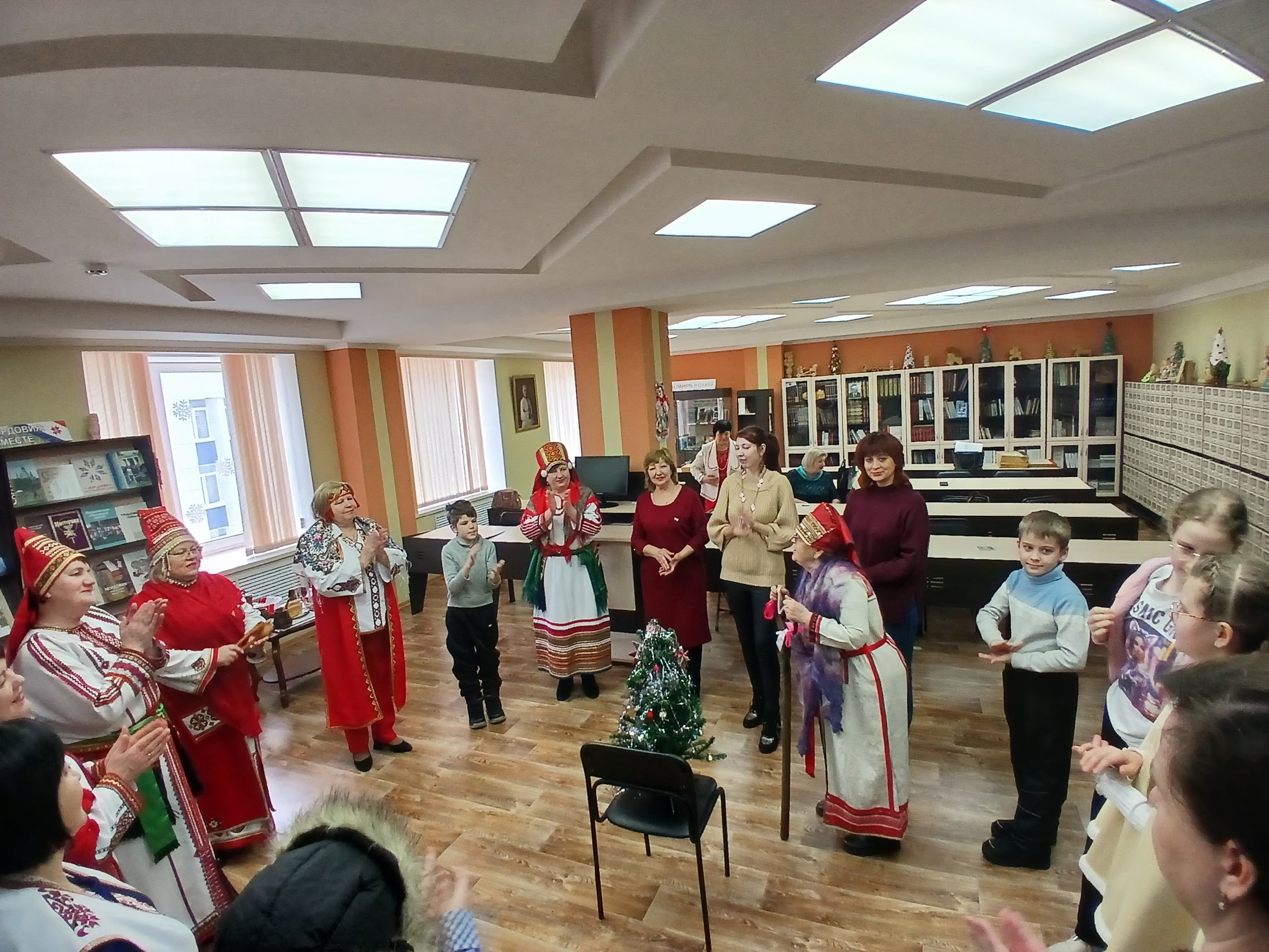 В канун праздника Рождества Христова в Национальной библиотеке Мордовии состоялись фольклорные посиделки из цикла рождественских встреч. Сотрудники отдела национальной и краеведческой литературы совместно с представителями Дворца культуры г. о. Саранск ДК «Луч» показали зимние обряды мордовской семьи.